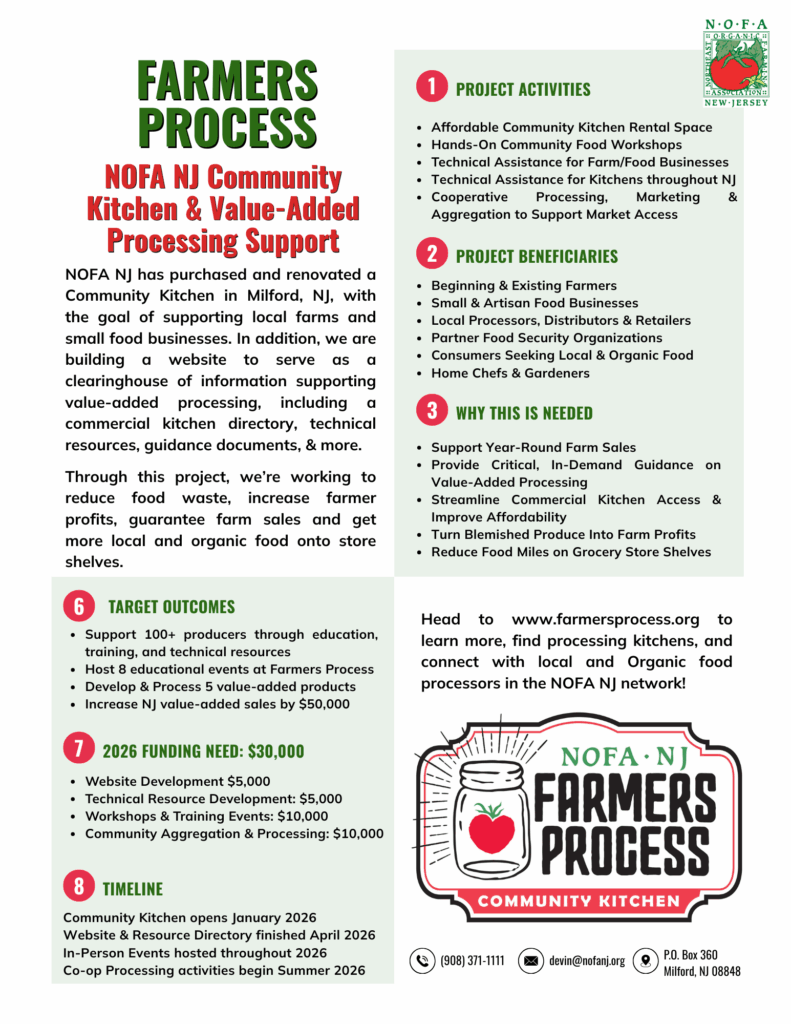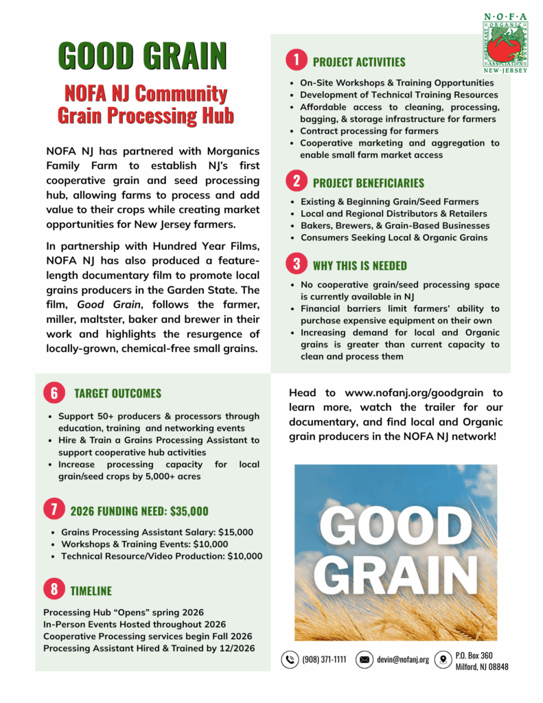 Working with our diverse community of farmers, distributors, retailers, and eaters, 2026 NOFA NJ activities are focused on improving farm profitability and increasing the supply of local foods in the marketplace. We are doing this through cooperative production, processing, and marketing initiatives, including our Good Grain project, Farmers Process Community Kitchen, Organic Future Fund, and more.